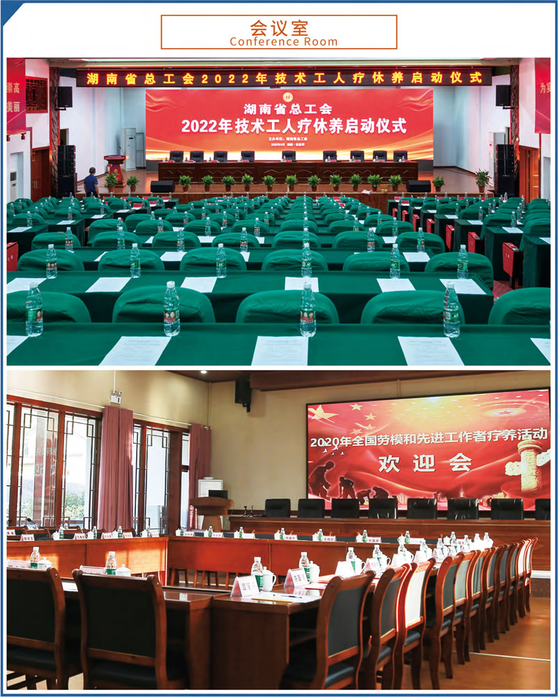這里設(shè)施完備,環(huán)境優(yōu)美。占地70余畝,建筑面積23000余平方米,由多座湘西民族風(fēng)格的園林建筑群組成。院外依山傍水,院內(nèi)綠樹(shù)成蔭,環(huán)境優(yōu)美怡人。現(xiàn)有客房4棟,各類(lèi)客房279間,中西餐廳可滿(mǎn)足500人同時(shí)就餐。大小多功能會(huì)議室、棋牌室、健身房、藍(lán)球場(chǎng)、羽毛球場(chǎng)等設(shè)施均有配備。