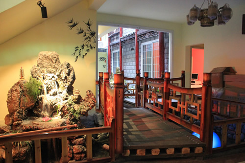 古樸的客房?jī)?nèi),超大陽(yáng)臺(tái)全景落地窗,是您欣賞沱江風(fēng)光帶首選客棧,兩座百年四合院內(nèi)小橋流水,假山錦鯉,一百三十平米休閑花園別具情調(diào)。紅酒加咖啡的大堂吧、彩色精致的情調(diào)房、古典高雅的臨江觀景房以及大型公共觀景平臺(tái),龍閣的點(diǎn)點(diǎn)滴滴都透著出古城的神韻和幽靜,走進(jìn)龍閣客棧,給您一個(gè)完美的鳳凰古城沱江全景!