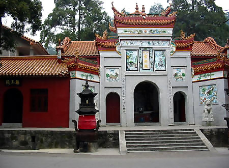 在岳麓山半腰,系晉初古寺,是佛教人湘最早的一所大寺。明神宗時(shí) 更名為萬(wàn)壽寺,民國(guó)初年復(fù)名,古麓山專(zhuān)。唐代大詩(shī)人杜甫曾用“寺門(mén)高開(kāi) 洞庭野,殿腳插入赤沙湖”的詩(shī)句稱(chēng)頌殿字宏大。大雄寶殿等主要建筑,于 1944年被炸毀,僅存山門(mén)和觀音閣,現(xiàn)已修整一新.山門(mén)上有“古麓出寺” 的橫額,兩旁為“漢魏最初名勝,湖湘第一道場(chǎng)"對(duì)聯(lián),門(mén)外古楓參天,濃 蔭覆蓋,門(mén)內(nèi)園圃百花爭(zhēng)艷。觀音閣為磚木結(jié)構(gòu),1955年曾加以修葺,1980 年再次修整恢復(fù)原貌,并在廳堂神龕中置觀音像。閻內(nèi)常舉辦小型書(shū)畫(huà)展 覽。觀音閣前有兩株羅漢松,左邊一株是六朝遺跡,稱(chēng)“六朝松",樹(shù) 齡在1700年以上, 是岳麓山植物界的"元老", 老干新枝,紛繁翁 郁,彌足珍貴;右邊一株于清代被巨風(fēng)拔去并被清代人補(bǔ)植。兩棵古松 并峙于閣前,游人樹(shù)下經(jīng)過(guò),若入關(guān)隘,故有“關(guān)松"之稱(chēng)。