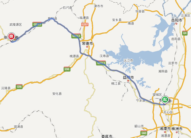 長沙去張家界自駕車線路圖: