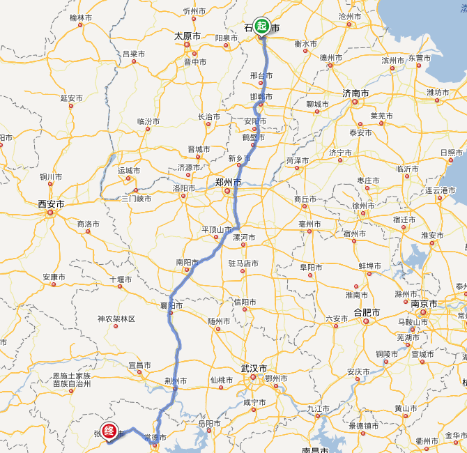 石家莊到張家界自駕車路線地圖(距離最短)