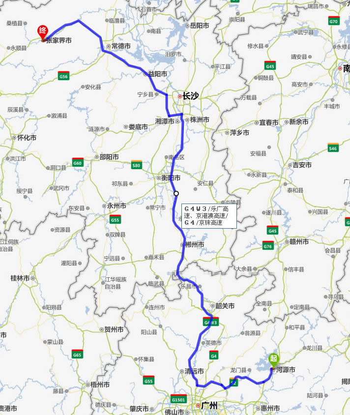 現(xiàn)在位置:張家界旅行社->交通指南->自駕車(chē)路線(xiàn) -> 河源到張家界旅游自駕車(chē)線(xiàn)路_河源去張家界自駕車(chē)要多長(zhǎng)時(shí)間_有多少公里