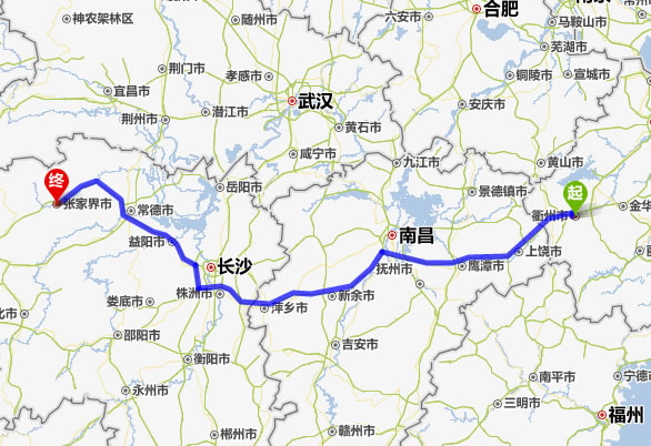 現(xiàn)在位置:張家界旅行社->交通指南->自駕車路線 -> 衢州到張家界旅游自駕車線路,衢州去張家界自己開車要多長(zhǎng)時(shí)間,有多少公里